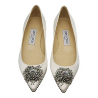Jimmy Choo Love Embellished Satin Flat Ballerina Shoes in White (36.5)