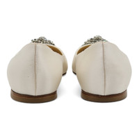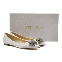 Jimmy Choo Love Embellished Satin Flat Ballerina Shoes in White (36.5)