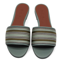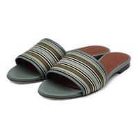 Loro Piana striped fabric travel sandals with leather trim 0.25 in / 10 mm flat heel Open toe Wide band upper Slide style Leather outsole Lining: Leather Made in Italy