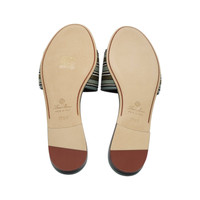 Loro Piana striped fabric travel sandals with leather trim. Store price: $750 Size: 37.5 (7 US). Width: D 0.25 in / 10 mm flat heel Open toe Wide band upper Slide style Leather outsole Lining: Leather Made in Italy
