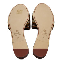 Loro Piana striped fabric travel sandals with leather trim. Store price: $750 Size: 36 (5.5 US). 0.25 in / 10 mm flat heel Open toe Wide band upper Slide style Leather outsole Lining: Leather Made in Italy