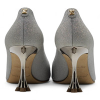 Silver. Textile. Leather outsole. 7.5 cm / 3-inch heel. LV Initials stud. Monogram Flower-shaped heel. Made in Italy. LV code: 1AC8JQ Condition: Brand new with box.
