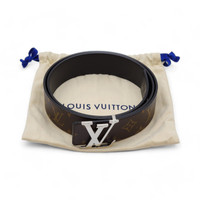 Width: 40 mm / 1.6 inches Size: 100/40 - measures 40 inches (100cm) from buckle to middle hole. Shiny silvery LV buckle Reversible: Monogram canvas on one side, smooth black calf leather on the other Made in Spain Condition: New Includes: Dustbag. LV style: M9821