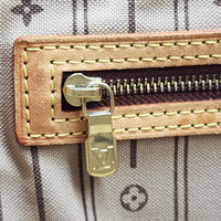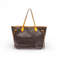 Louis Vuitton Neverfull MM Monogram Canvas Tote Bag This iconic Louis Vuitton Neverfull MM is crafted from the brand’s signature Monogram coated canvas with natural Vachetta leather trim and slim shoulder straps. Designed to be lightweight yet spacious, it’s a timeless everyday tote featuring side cinch cords and a striped textile interior for added versatility and style. Features: * Monogram coated canvas exterior * Natural Vachetta leather trim and shoulder straps * Beige striped textile interior lining * Open top with clasp closure * Interior zip pocket and spacious main compartment * Side drawstring cinch details * Gold-tone hardware * Shoulder carry * Made in France Size: Approx. 12.2” W × 11” H × 5.5” D, handle drop approx. 8.5” Condition: Pre-owned. Exterior canvas is in great condition. Visible signs of use on the Vachetta leather trim and side straps. Interior shows marks, as shown in photos. Please review all images carefully, as they are part of the description. All items are 100% authentic. Price is firm due to small margins.