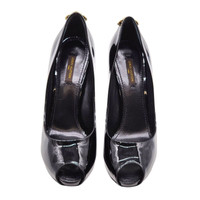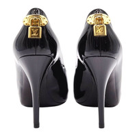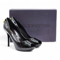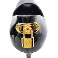 Louis Vuitton Lock It Peep Toe Platform Pumps – Black Patent Leather – Women’s EU 38 / US 7.5 – Made in Italy Step into timeless luxury with these Louis Vuitton Lock It Peep Toe Platform Pumps, crafted in Italy from glossy black patent leather. Featuring a sleek silhouette, peep toe front, and dramatic stiletto heel with platform, these pumps are elevated by the signature gold-tone LV padlock detail at the heel—a bold statement touch that defines Louis Vuitton elegance. Features: • Black patent leather with gold-tone LV padlock accent • Women’s EU 38 / US 7.5 • Approx. 120mm (4.7 in) stiletto heel with platform • Peep toe design, leather insole stamped Louis Vuitton • Leather outsole, slip-on style • Made in Italy • Includes original Louis Vuitton box We are a trusted family-owned business since 1999, specializing in 100% authentic designer footwear. Every item is carefully inspected, securely packaged, and shipped promptly. Buy with confidence—authenticity guaranteed.