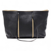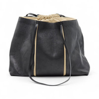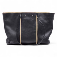 Maison Margiela Large Tote Bag - Black Leather & Canvas Drawstring – Eco Sustainable Retail: Approx. $1900 Condition: Brand new, minor corner rubbing Maison Margiela delivers its signature avant-garde minimalism in this stunning, oversized tote bag crafted from supple black leather with beige eco-conscious canvas lining. Featuring the hallmark four-corner stitches and a convertible silhouette, this piece blends sustainability with understated luxury. Color: Black with Beige Interior Material: Grained leather with canvas lining Closure: Drawstring top Straps: Dual leather shoulder straps Interior: Open compartment with leather patch pocket Tag: Maison Margiela numerical label with circled “11” denoting accessories line Made in Italy Measurements (approx): Width: 21 in (flat) Height: 19.5 in Depth: 5.5 in Strap drop: 12 in Celebrity Sightings: Maison Margiela totes have been carried by boundary-pushing icons like Rihanna, Tilda Swinton, and Kanye West, praised for their architectural lines and unconventional design cues. 100% Authentic. Light signs of handling on corners (as shown). Clean inside and out. A standout piece that’s both practical and conceptual—perfect for city life or travel. Price is firm due to minimal profit margins. We are a family-run business offering rare, designer pieces with integrity and transparency.