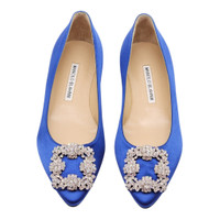 Manolo Blahnik Hangisiflat Jewel Buckle Flat Pumps - Satin - Blue 35.5