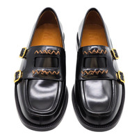 Marni Bambi 3.0 Double Buckle Leather Women's Loafers Black MOMS006002 EU 41 US 11 Refined and contemporary, these Marni loafers showcase Italian craftsmanship with a modern edge. Crafted from smooth black leather, they feature a distinctive double-buckle design accented by contrast stitching for a bold yet elegant finish—perfect for elevated everyday wear. Features: • EU 41 / US 11 - foot length 10.35 inches • Black smooth leather upper with polished finish • Double buckle monk-strap design with gold-tone hardware • Square toe silhouette with stitched apron detail • Leather lining and leather insole for comfort • Leather sole with stacked heel • Made in Italy • New with original packaging Since 1999, we’ve been serving customers worldwide with flawless reviews for quality and trust. All designer products are 100% authentic, carefully inspected, and securely packaged for safe delivery.