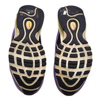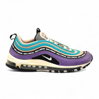 Introducing the Nike Air Max 97 “Have a Nike Day” edition, a bold and vibrant twist on the legendary Air Max 97 silhouette. Originally released in 2019, this model stands out with its playful colors, signature smiley face lace lock, and uplifting “Have a Nike Day” branding that wraps around the upper, making it an instant standout for collectors and everyday wearers alike. * Style Code: BQ9130-500 * UPC: 0088691557515 * US Size: 11 * EUR: 45 * Colorway: Multi-Color / Black / White / Purple * Year of Release: 2019 * Upper constructed from a mix of mesh, suede, and synthetic overlays for durability and breathability * Classic full-length visible Air Max cushioning for all-day comfort * “Have a Nike Day” repeat branding around the upper adds a unique and collectible touch * Iconic Nike smiley face lace lock * Made in Vietnam Condition: Gently used condition. Light signs of wear on the uppers and outsoles as shown in the detailed photos. The midsole shows typical aging and some minor separation starting on the heel (also clearly shown). No major defects. Overall solid condition for a pair of this release year. This is a great opportunity to own one of Nike’s most playful and limited releases, at a fraction of retail pricing. With its instantly recognizable design and vibrant color scheme, the “Have a Nike Day” Air Max 97 adds a statement to any sneaker rotation. We take pride in offering only 100% authentic merchandise. All products are thoroughly inspected and sourced from trusted channels. Buy with confidence knowing your purchase is backed by our authenticity guarantee and commitment to excellent customer service.