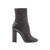 Saint Laurent Studded Ankle Boots – Black – New with Box Make a bold statement with these Saint Laurent Studded Ankle Boots, a perfect fusion of sophistication and edge. Crafted in sleek black leather and adorned with metal studs, these boots elevate any look with their striking yet refined design. Features • Black leather construction with stud detailing • Ankle-height silhouette with side zip closure • Leather insole and lining for comfort and breathability • Block heel (approx. 4 in) for elegant stability • Includes original Saint Laurent box • Size: 36.5 (6 - 6.5 US) • Made in Italy Since 1999, we’ve proudly served customers worldwide with flawless reviews for trust and quality. Every pair is 100% authentic, carefully inspected, and securely packaged for safe delivery. Price is firm due to small profit margins.
