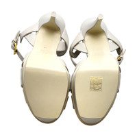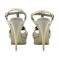 Saint Laurent Tribute Platform Leather Sandals in Calfskin – White Size: EU 38 (7.5 - 8 US) A timeless icon from the house of Saint Laurent, the Tribute platform sandal is a pinnacle of sleek, modern elegance. Crafted in smooth white calfskin leather, this sophisticated style features a knotted front design, slim T-strap silhouette, and the instantly recognizable high stiletto paired with a structured platform. * Retail price: $1,100 * Condition: Brand new in box (NIB) * Material: Calf leather * Color: White * Heel height: approx. 5.5 inches (140 mm) * Platform height: approx. 1.5 inches (40 mm) * Includes: Original Saint Laurent box * Made in Italy * Multiple sizes available Sizing note: We recommend purchasing your regular Saint Laurent size. If you are not familiar with Saint Laurent footwear sizing, we strongly suggest visiting a Saint Laurent boutique or an authorized retailer such as Saks Fifth Avenue to determine your best fit before purchasing. We are trusted specialists in luxury fashion with over 16 years of selling experience. All items are 100% authentic, carefully curated, and ready to ship. Inventory is limited—don’t miss the chance to own this cult-favorite silhouette from Saint Laurent.