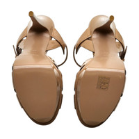 Saint Laurent Tribute Platform Leather Sandals Size: 39.5 (US 9.5) A timeless icon from the house of Saint Laurent, the Tribute platform sandal is a pinnacle of sleek, modern elegance. Crafted in smooth white calfskin leather, this sophisticated style features a knotted front design, slim T-strap silhouette, and the instantly recognizable high stiletto paired with a structured platform. * Retail price: $1,100 * Condition: Brand new in box (NIB) * Material: Calf leather * Color: Tan * Heel height: approx. 5.5 inches (140 mm) * Platform height: approx. 1.5 inches (40 mm) * Includes: Original Saint Laurent box * Made in Italy Sizing note: We recommend purchasing your regular Saint Laurent size. If you are not familiar with Saint Laurent footwear sizing, we strongly suggest visiting a Saint Laurent boutique or an authorized retailer such as Saks Fifth Avenue to determine your best fit before purchasing. We are trusted specialists in luxury fashion with over 16 years of selling experience. All items are 100% authentic, carefully curated, and ready to ship. Inventory is limited—don’t miss the chance to own this cult-favorite silhouette from Saint Laurent.