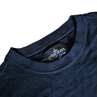 Stone Island Shadow Project Japanese Aran Short-Sleeve. Two sided t-shirt from stone island's 'shadow project' line. the front half of the t-shirt remaining plain black while the back is knitted and partially see through. 100% Cotton Regular fit. Measurements Shoulder width: 19" Chest: 21" Length: 25" Sleeve: 8.65"