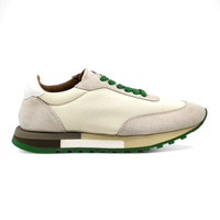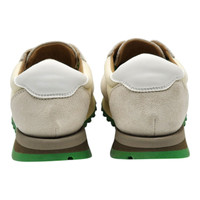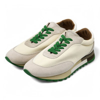 The Row Owen Sneakers – Beige & Green (Ivory/Green) – 35.5 The Owen sneakers by The Row offer a refined take on vintage-inspired running shoes, blending minimalist aesthetics with premium craftsmanship. Designed in a versatile beige and green colorway, these low-top sneakers feature a combination of suede and breathable mesh, delivering both style and functionality. With a lace-up closure and padded collar, these sneakers provide a comfortable and secure fit, while the suede and mesh lining enhances breathability. A foam rubber midsole ensures lightweight cushioning, and the treaded rubber outsole offers excellent grip and durability. Color: Ivory/Green Material: Textile, Leather (Upper); Rubber (Sole) Design: Low-top with lace-up closure Features: Padded collar, suede and mesh lining, foam rubber midsole, treaded outsole Made in: Italy Size: EU 35.5 / US 5 Condition: New The Row code: F1284-W20L25-IVGR A perfect balance of elegance and everyday wearability, these Made in Italy sneakers embody The Row’s dedication to understated luxury and impeccable design.
