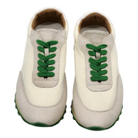 The Row Owen Sneakers – Beige & Green (Ivory/Green) – 35.5 The Owen sneakers by The Row offer a refined take on vintage-inspired running shoes, blending minimalist aesthetics with premium craftsmanship. Designed in a versatile beige and green colorway , these low-top sneakers feature a combination of suede and breathable mesh , delivering both style and functionality. With a lace-up closure and padded collar , these sneakers provide a comfortable and secure fit, while the suede and mesh lining enhances breathability. A foam rubber midsole ensures lightweight cushioning, and the treaded rubber outsole offers excellent grip and durability. Color: Ivory/Green Material: Textile, Leather (Upper); Rubber (Sole) Design: Low-top with lace-up closure Features: Padded collar, suede and mesh lining, foam rubber midsole, treaded outsole Made in: Italy Size: EU 35.5 / US 5 Condition: New The Row code: F1284-W20L25-IVGR A perfect balance of elegance and everyday wearability , these Made in Italy sneakers embody The Row’s dedication to understated luxury and impeccable design.