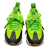 Versace Chain Reaction Women’s Sneakers – Neon Green/Black – Size EU 37 (US 6.5) – Made in Italy – Preowned Step into bold luxury with the Versace Chain Reaction, a statement sneaker blending streetwear edge with high-fashion detail. This pair features a breathable mesh upper with neon green accents, a suede heel wrap for contrast, and signature Versace motifs including the Greek Key pattern on the tongue and toe. A gum rubber outsole with the brand’s chain-texture design adds grip and iconic style, while pull tabs with embroidered details ensure easy wear. Finished with a cushioned insole for lasting comfort, these sneakers remain one of Versace’s most recognizable silhouettes. Features: • Chain Reaction – Women’s Size EU 37 (US 6.5) • Neon green/black with gum sole • Mesh and suede upper, suede heel wrap • Greek Key branding on tongue and toe • Lace-up closure with stretch-fit ankle support • Pull tabs with embroidered detail • Rubber outsole with chain-texture design • Cushioned insole for comfort • Made in Italy Condition: Preowned, gently used. See photos for details. We are a trusted family-owned business since 1999, specializing in authentic designer footwear. Every item is carefully inspected, stored securely, and shipped promptly. Buy with confidence.