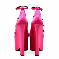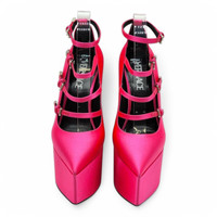 Versace Tempest Strappy Satin Platform Pumps – Pink – EU 37.5 / US 7.5 – NWB – $1,445 Step into bold luxury with these Versace Tempest Platform Pumps in striking pink satin. This high-impact silhouette features wraparound ankle straps, a towering stiletto heel, and a dramatic platform that combines fashion-forward edge with signature Versace elegance. * Brand: Versace * Model: Tempest Platform Pumps * Color: Pink * Material: Satin upper with leather sole * Size: EU 37.5 / US 7.5 * Heel Height: Approx. 7 in * Platform: Approx. 3 in * Condition: New With Box (NWB) * Made in: Italy * Retail Price: $1,445 These glamorous pumps are perfect for special events, evening looks, or collectors of bold designer footwear. Authentic. Ships securely. THE PRICE IS FIRM due to minimal profit margins.