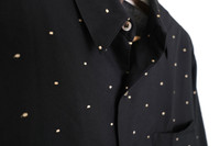 Workshop, Y's for Men - Yohji Yamamoto Collection: Archive (1980s) Composition: Rayon (100%) Made in Japan. This black rayon shirt with embroidered pin dots (aka Swiss dots) comes from Yohji Yamamoto's early Y's for Men Workshop line, likely from the early 1980s. It's in excellent used condition, with all buttons intact, including the original extra button on the care tag. It can be identified and dated by the style of Workshop label and the material tag which says "(株)ワイズ・フォーメン" (Y's for Men Co, Ltd). In excellent shape with only a few threads and no structural issues (see macro photos). Approximate Measurements: • Chest: 22 ¼” (56.5 cm) • Length: 30 ½” (77.5 cm) • Shoulders: 19 ¼” (49 cm) • Sleeve Length: 20 ⅛” (51 cm) • Hem: 20 ½” (52 cm) Note: The bottom hem appears asymmetrical in some photos due to being freshly unfolded however it is not. Some images have enhanced exposure to highlight the design. Workshop was one of the earliest of Yohji Yamamoto's lines launched in the 1980s from the early Y's for Men line. Workshop pieces are quite rare and collected by those with a niche interest in historical work by Yohji. Y's for Men was Yohji Yamamoto's first and original menswear line which ran from 1979 to 2009. He created it based on the idea of clothing for men that would complement his Y's line for women thereby "enabling a man to look his best when standing next to her." The Y's for Men line has always been inspired by Yohji's personal wardrobe. In 2023 the Y's for Men line returned after a 13 year break, and is now a current line again with new collections. Offers welcome. Please ask all questions before buying. Items are as pictured and described. Shipping from British Columbia, Canada. Final sale, no returns. For more avant-garde collecting: @ehtersono