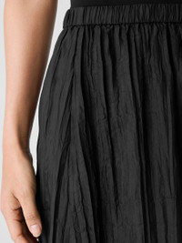 A simple silhouette set apart by unique, crushed texture. The flared skirt with long lines, in a lustrous silk weave. Style No. S5TZP-S4406 DESIGN - A slim fit that subtly flares at the ankle. - Branch skirt only available online. Select colors may vary by store. - Kalyane is 5'10" and wears a size S, which measures 34 inches on the body. Haejin is 5'5" and wears a size PS, which measures 32 inches on the body. Size 1X measures 35 inches on the body. - 1-inch elastic waistband. - Style No. S5TZP-S4406 FABRIC - Relaxed elegance. Light and lustrous silk that's twisted for crinkled texture. - Place in mesh bag. Machine wash cold gentle cycle. Do not wring. Twist to crinkle and dry twisted. Do not iron. Do not steam. For best results, dry clean. - Made in China. 100% Silk. SUSTAINABILITY - This fabric is bluesign® APPROVED. It's dyed with safer chemistry using less water and less energy, meeting the bluesign® CRITERIA.