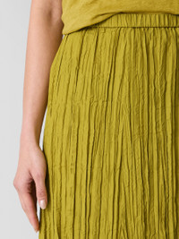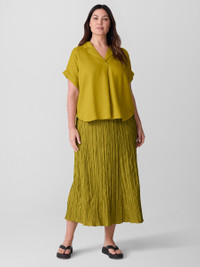 A simple silhouette set apart by unique, crushed texture. The flared skirt with long lines, in a lustrous silk weave. Style No. S5TZP-S4406 DESIGN - A slim fit that subtly flares at the ankle. - Branch skirt only available online. Select colors may vary by store. - Kalyane is 5'10" and wears a size S, which measures 34 inches on the body. Haejin is 5'5" and wears a size PS, which measures 32 inches on the body. Size 1X measures 35 inches on the body. - 1-inch elastic waistband. - Style No. S5TZP-S4406 FABRIC - Relaxed elegance. Light and lustrous silk that's twisted for crinkled texture. - Place in mesh bag. Machine wash cold gentle cycle. Do not wring. Twist to crinkle and dry twisted. Do not iron. Do not steam. For best results, dry clean. - Made in China. 100% Silk. SUSTAINABILITY - This fabric is bluesign® APPROVED. It's dyed with safer chemistry using less water and less energy, meeting the bluesign® CRITERIA.