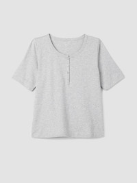 Mélange Organic Cotton Interlock Henley Sleep Top