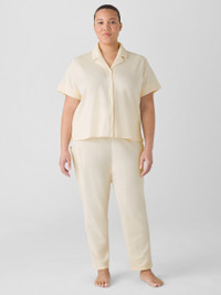 The relaxed lines of our slouchy pant, now with side pockets. Ideal for lounging or sleeping, in organic Pima cotton that's grown using regenerative farming practices. Style No. SLANK-B920 DESIGN - A slouchy silhouette with a longer rise and tapered ankle. Fits the body withease. - Only available online. - Rebekah is 5'10" and wears a size S. - 1 1/2-inch elastic waistband with drawstring, side patch pockets. - 11 1/2-inch rise; 27 1/2-inch inseam; 7-inch leg opening (size S). 13 1/2-inchrise; 27 1/2-inch inseam; 7 1/2-inch leg opening (size 1X). - Style No. SLANK-B920 FABRIC - Organic Pima cotton, doubleknit with interlocking stitches for body andstructure. Now grown using regenerative farming methods that focus on soilhealth and biodiversity. - Machine wash cold. Tumble dry low. - Made in Peru. 100% Organic Cotton. SUSTAINABILITY - Organic farming supports clean water and healthy soil.