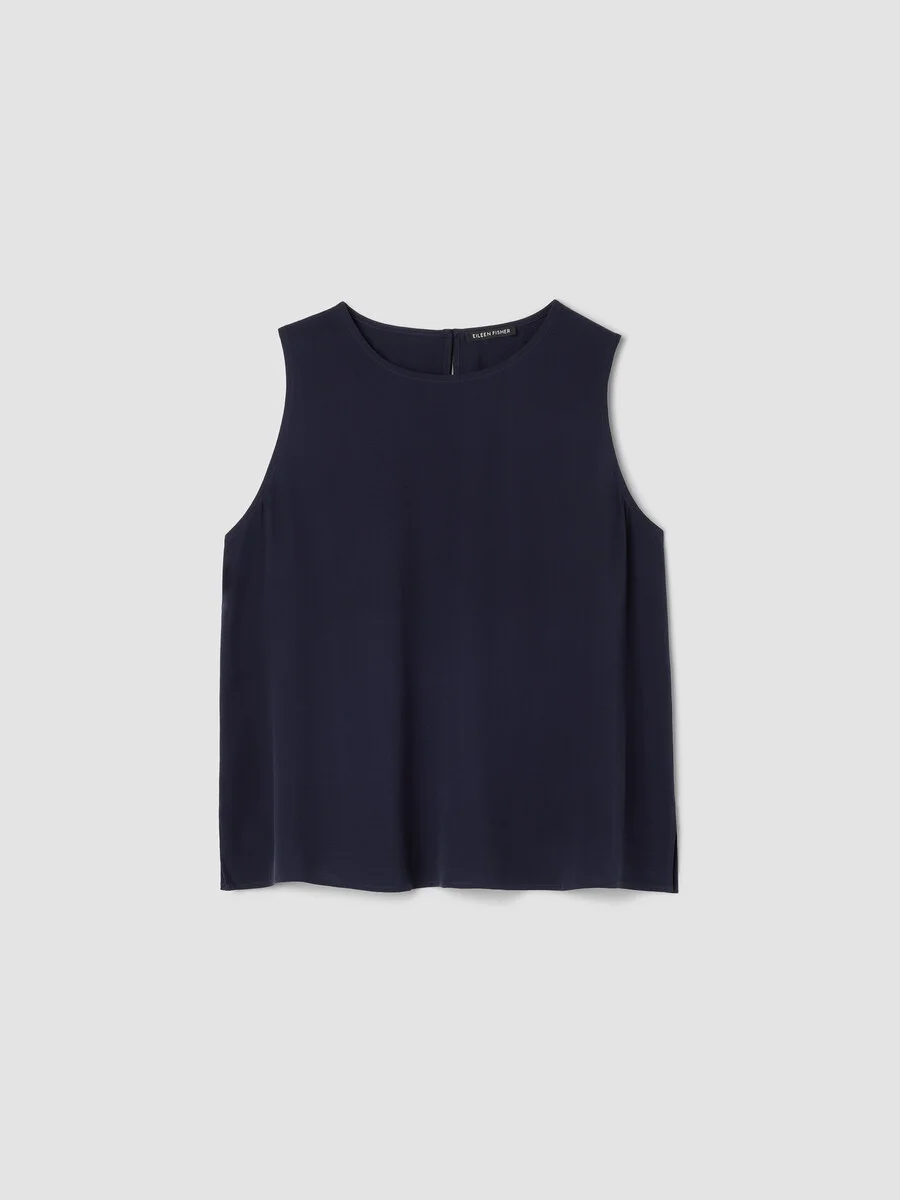 An elegant tank to take you from day to night. With a round neck and subtle side slits, in our responsibly dyed silk georgette. Made in a Fair Trade Certified™ factory. Style No. S6GC1-U4403 DESIGN - Close at the shoulders, wider at the hem. A silhouette that fits the body with ease. - Kalyane is 5'10" and wears a size S in Ink, which measures 23 inches on the body. Ryan is 5'8" and wears a size 1X, which measures 25 1/2 inches on the body. - Round neck, sleeveless. - 3-inch side slits, keyhole back closure. - This style was designed for every body. It's Good for Petites, which means the proportions will fit and flatter customers 5'4" and under. - Style No. S6GC1-U4403 FABRIC - Light, fluid and versatile. Silk with a subtly textured matte surface that we've counted on since 1999. - Machine wash cold. Line dry. - Made in Indonesia. 100% Silk. SUSTAINABILITY - Our Fair Trade Certified™ factories meet rigorous social and environmental standards. By choosing Fair Trade Certified™ products, you’re helping to improve the lives of workers, build resilient communities and protect the environment. - This fabric is bluesign® APPROVED. It's dyed with safer chemistry using less water and less energy, meeting the bluesign® CRITERIA.