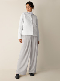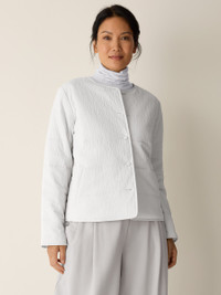 An effortless quilted jacket with recycled polyester padding that keeps warmth in—and waste out of landfills. Made in a Fair Trade Certified™ factory. Style No. F5DFJ-J5823 DESIGN - Close at the shoulders, wider at the hem. A silhouette that fits the body with ease. - Only available at select EILEEN FISHER stores. - Size S measures 24 inches on the body. Size 1X measures 26 1/2 inches on the body. - Round neck, button front, welt pockets. - Fully lined in Silk Habutai. - Style No. F5DFJ-J5823 FABRIC - We blend matte silk with recycled nylon for a subtly rippled weave that still feels smooth to the touch. With PrimaLoft™ recycled polyester fill made from plastic bottles. - Made in Indonesia. SUSTAINABILITY - Recycled nylon keeps waste out of the landfill. It's part of our commitment to changing the way clothes are made.
