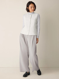 A quilted vest to elevate your layers. With recycled polyester that keeps warmth in—and waste out of landfills. Made in a Fair Trade Certified™ factory. Style No. F5DFJ-V1357 DESIGN - Close at the shoulders, wider at the hem. A silhouette that fits the body with ease. - Only available at select EILEEN FISHER stores. - Valerie is 5'9" and wears a size XS in Bone, which measures 24 inches on the body. Size 1X measures 26 1/2 inches on the body. - Round neck, button front, welt pockets. - Fully lined in Silk Habutai. - Style No. F5DFJ-V1357 FABRIC - We blend matte silk with recycled nylon for a subtly rippled weave that still feels smooth to the touch. With PrimaLoft™ recycled polyester fill made from plastic bottles. - Made in Indonesia. SUSTAINABILITY - Recycled nylon keeps waste out of the landfill. It's part of our commitment to changing the way clothes are made.