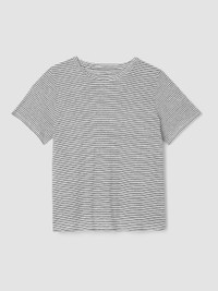 An everyday tee in our relaxed jersey made from organic linen. Made in a Fair Trade Certified™ factory. Style No. S6ISZ-T5852 DESIGN - Close at the shoulders, wider at the hem. A silhouette that fits the body with ease. - Kalyane is 5'10" and wears a size S in White/Black, which measures 25 inches on the body. Ryan is 5'8" and wears a size 1X, which measures 27 1/2 inches on the body. - Crew neck, short sleeves. - Finished with banding at the neck. - This style was designed for every body. It's Good for Petites, which means the proportions will fit and flatter customers 5'4" and under. - Style No. S6ISZ-T5852 FABRIC - Casual yet refined. A breezy knit with the natural texture of linen, now in a yarn-dyed stripe. - Machine wash cold. Tumble dry low. - Made in Vietnam. 100% Organic Linen. SUSTAINABILITY - Our Fair Trade Certified™ factories meet rigorous social and environmental standards. By choosing Fair Trade Certified™ products, you’re helping to improve the lives of workers, build resilient communities and protect the environment. - Organic farming supports clean water and healthy soil.