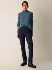 The slim jean: a modern silhouette with a flattering high rise, in our signature stretch ponte. Easy to live in—and easy to wash. Made in a Fair Trade Certified™ factory. Style No. F5TJX-P4708 DESIGN - Fits close to the body. Our slim fit is easier than the industry standard—with stretch for maximum comfort. - Kalyane is 5'10" and wears a size S in Ink. - 1 1/2-inch waistband, fly front with button and zipper closure. - Belt loops, back yoke, 5-pocket styling. - 11-inch rise; 30-inch inseam; 6 1/2-inch leg opening (size S). 10-inch rise; 28-inch inseam; 6-inch leg opening (size PS). 13-inch rise; 30-inch inseam; 7-inch leg opening (size 1X). - Style No. F5TJX-P4708 FABRIC - The sophistication of our signature doubleknit, now made with recycled nylon. Just the right amount of structure—and the right amount of stretch. - Machine wash cold. Line dry. - Made in Vietnam. 66% Tencel™ Lyocell/29% Recycled Nylon/3% Elastane/2% Nylon. SUSTAINABILITY - Our Fair Trade Certified™ factories meet rigorous social and environmental standards. By choosing Fair Trade Certified™ products, you’re helping to improve the lives of workers, build resilient communities and protect the environment. - Tencel™ Lyocell fiber is made from responsibly harvested trees. - Recycled nylon keeps waste out of the landfill. It's part of our commitment to changing the way clothes are made.