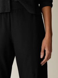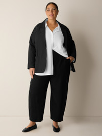 The arch pant. A modern silhouette with a relaxed barrel shape and side seams, in our Washable Stretch Crepe. Style No. S6TKO-P4893 DESIGN - Subtle parallel curves create an arch shape through the leg, slightly tapered at the ankle. - Select colors may vary by store. - Kalyane is 5'10" and wears a size S in Ink. Haejin is 5'5" and wears a size PS. Ryan is 5'8" and wears a size 1X. - 2-inch elastic waistband, slash pockets. - 11-inch rise; 27-inch inseam; 8-inch leg opening (size XS). 11-inch rise; 25-inch inseam; 7 1/2-inch leg opening (size PS). 13-inch rise; 27-inch inseam; 9-inch leg opening (size 1X). - Style No. S6TKO-P4893 FABRIC - From France, a textural knit with a unique combination of sophistication and stretch. Packs beautifully, goes everywhere. Loved since 2002. - Machine wash cold. Tumble dry low. - Made in USA of imported materials. 70% Eco Vera Viscose/24% Recycled Nylon/6% Elastane.
