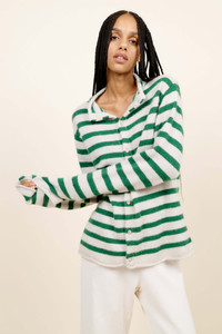 Heavy-weight cashmere cardigan with a Cousteau-inspired stripe pattern in fern and white. Details - 100% cashmere - Made in US