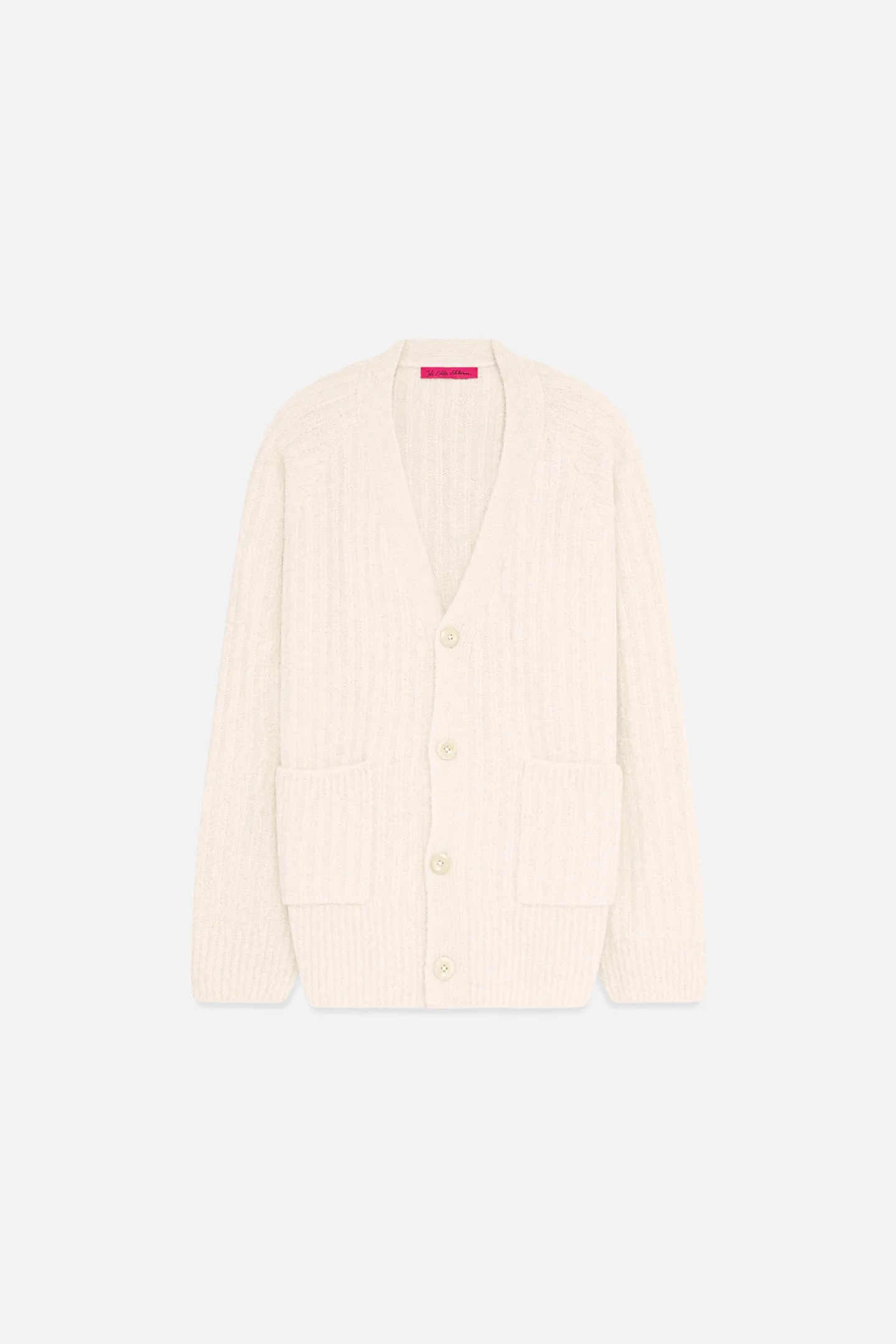 Relaxed cardigan in cashmere and silk with a ribbed boucle texture. Relaxed cardigan in cashmere and silk with a ribbed boucle texture. Details - 80% Cashmere, 20% Silk - Relaxed fit - Made in US