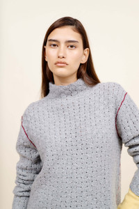 Cashmere mockneck sweater with textured knit and contrast trim. Details - 100% cashmere - Made in Italy
