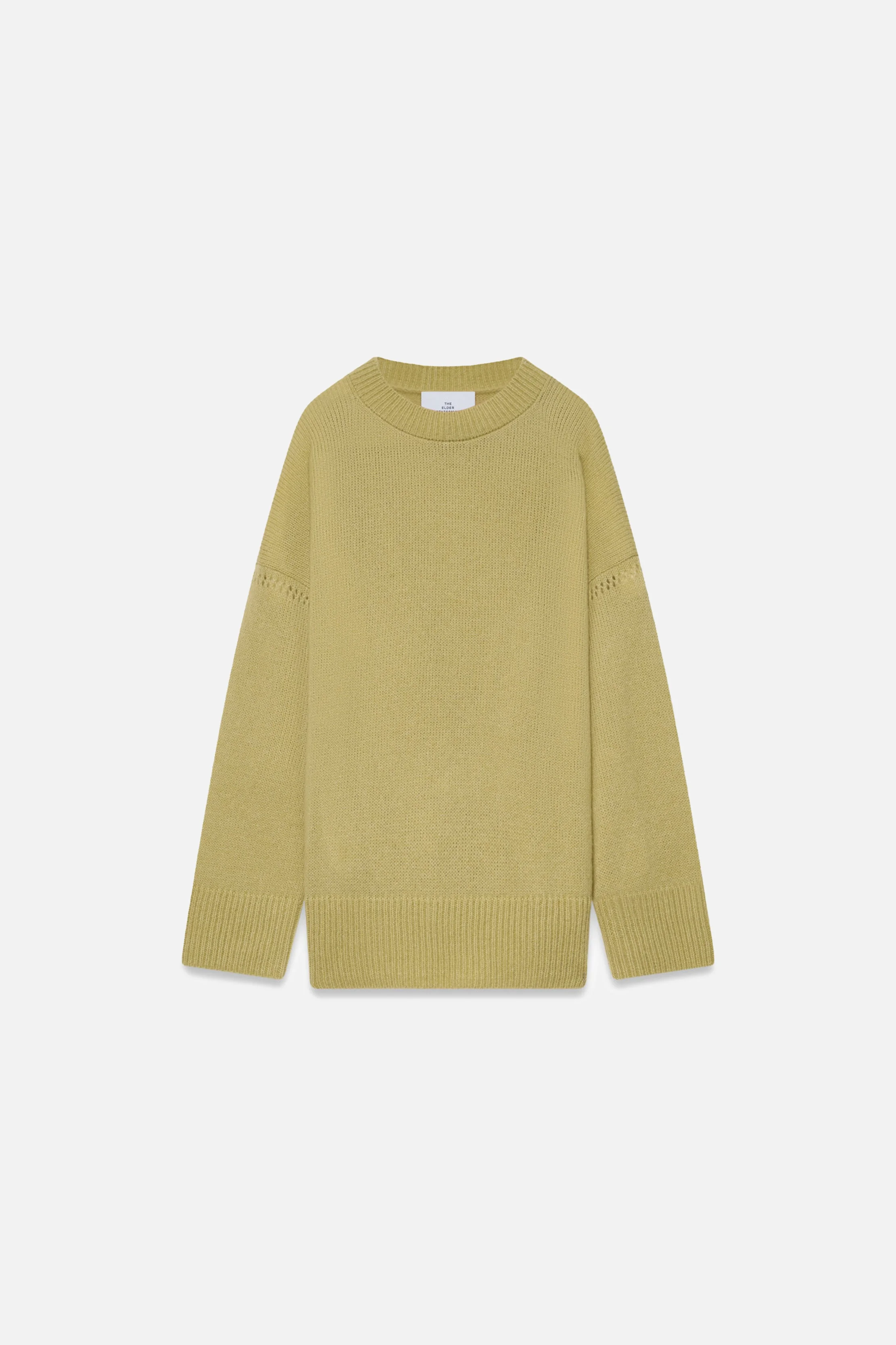 Cashmere-cotton crewneck sweater with a Nimbus knit, pointelle stitch detailing at the shoulder seam, and an oversized fit. Details - 63% Cashmere, 37% Cotton - Oversized fit - Pointelle stitch detail at shoulder seam - Made in US