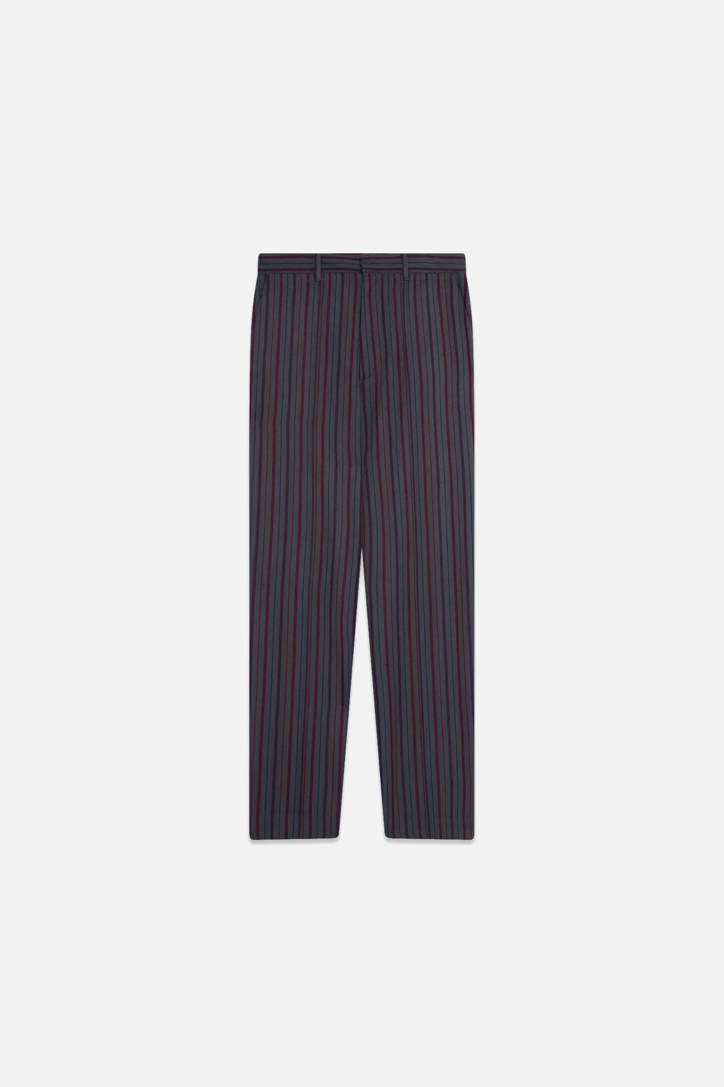 Relaxed straight-leg pant in wool and cashmere with hidden zipper, hook-and-eye closure, and seasonal granite stripe pattern. Details - 50% wool, 50% cashmere - Made in India