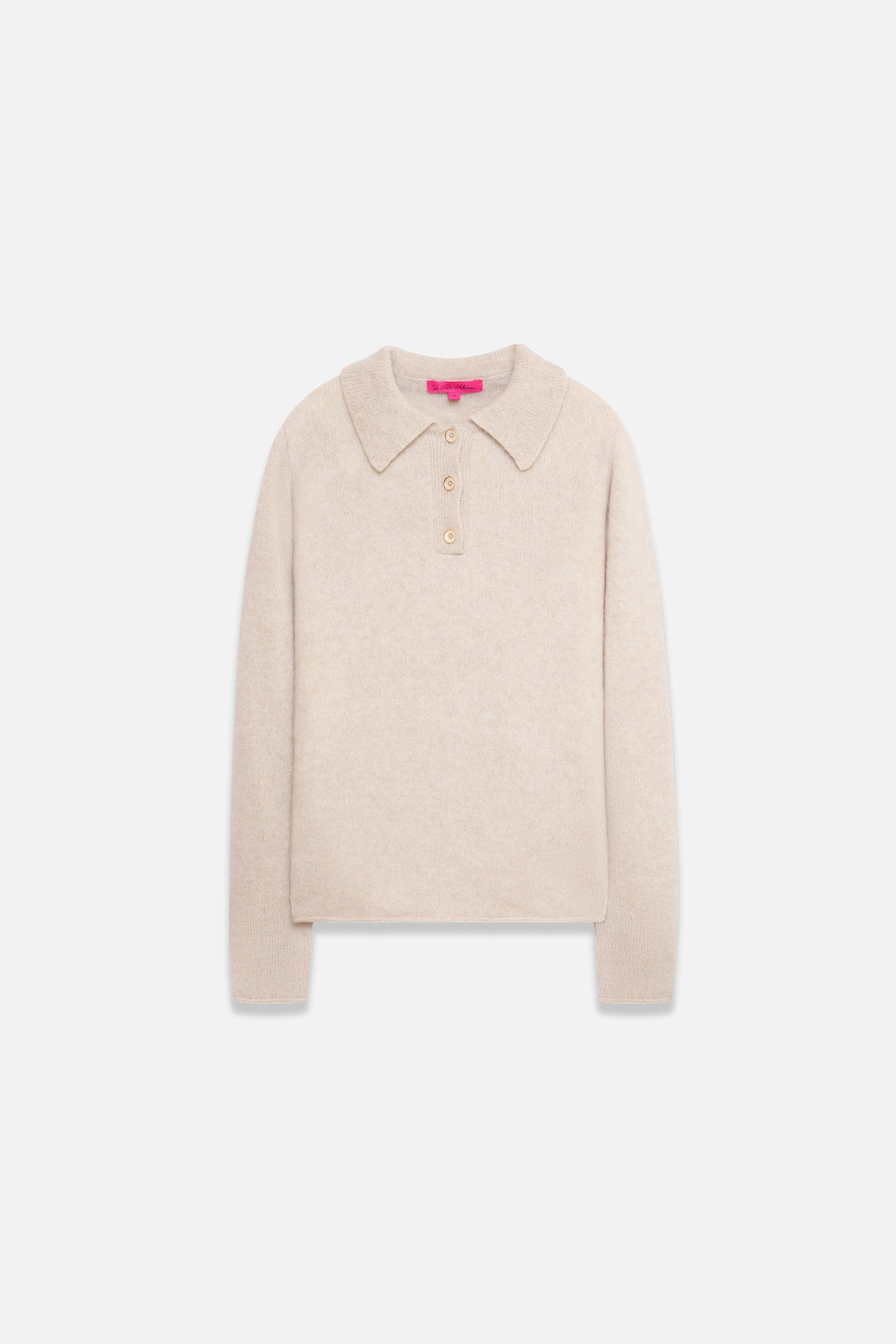 LONG-SLEEVE SWEATER IN HEAVYWEIGHT CASHMERE WITH ROLLED EDGE CUFFS AND HEM, 3-BUTTON CLOSURE, AND COLLAR. SIZE GUIDE SIZE & FIT - DRY CLEAN ONLY.