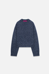 Crewneck sweater with ribbed hemline, collar, and cuffs in heavyweight cashmere with a women's slightly cropped fit. Details - 100% cashmere - Made in US