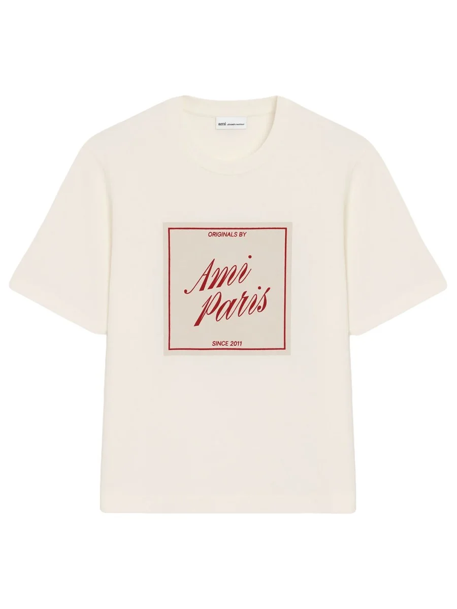 WHITE COTTON AMI PARIS HERITAGE PRINT T-SHIRT