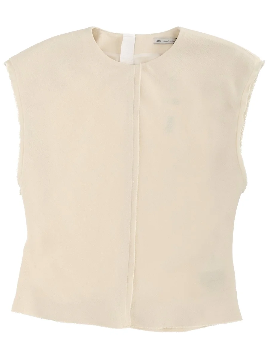 WHITE SLEEVELESS RAW EDGE DETAILS TOP