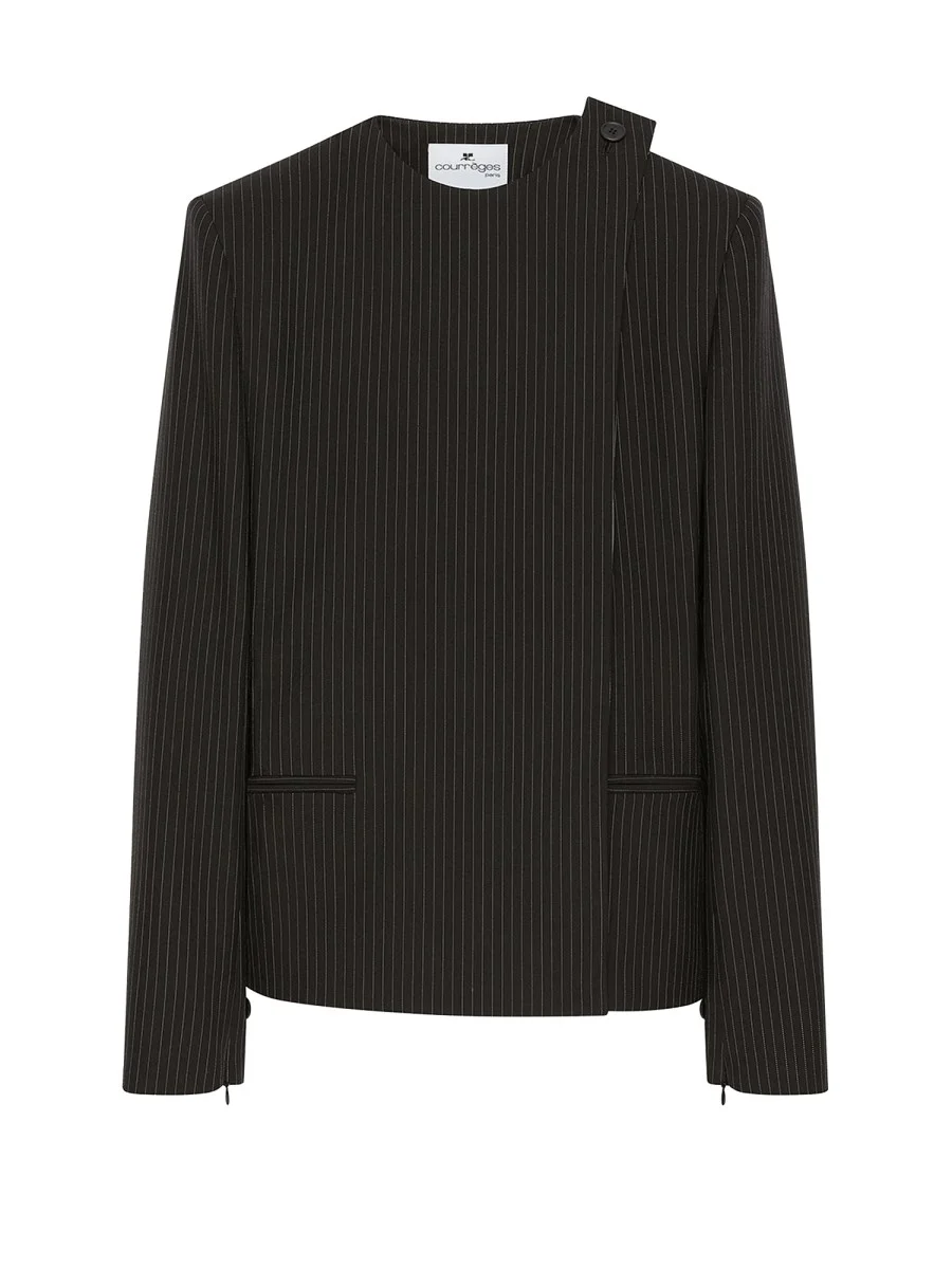 "BUCKLE PINSTRIPES" JACKET WITH ASYMMETRICAL CLOSURE
