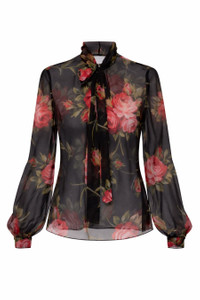 SILK CHIFFON TOP WITH ROSE BOUQUET PRINT