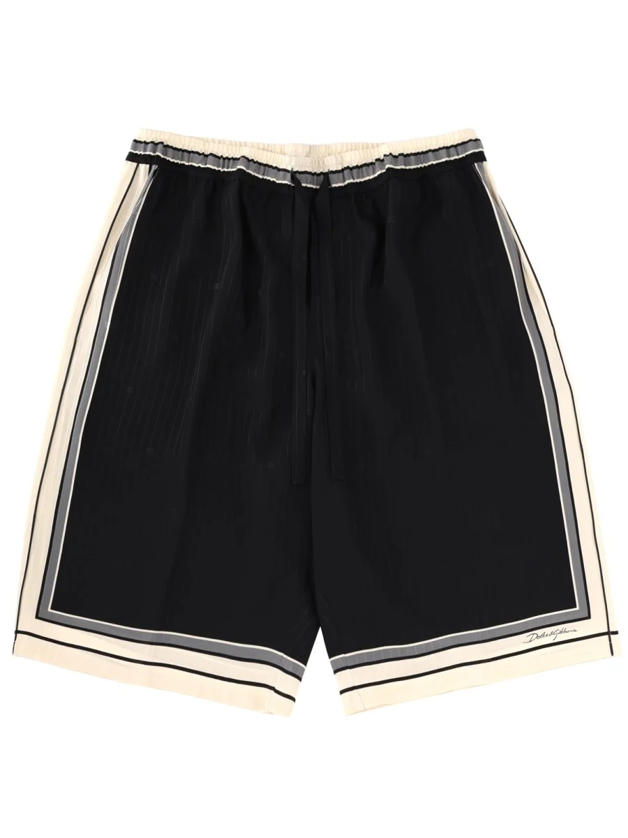 Logo and stripe-print vanity silk bermuda shorts
