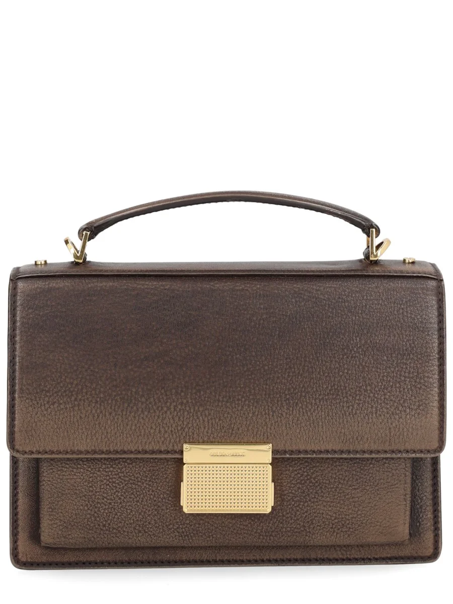 Venezia Bag in vintage dark brown embossed leather with gold details