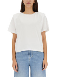 Questa T-shirt bianca di Isabel Marant e un classico senza tempo che unisce stile, comfort e versatilita. Realizzata in cotone di prima qualita, questa T-shirt e progettata per offrire un livello imbattibile di morbidezza e traspirabilita, garantendo un comfort che dura tutto il giorno. La silhouette regular fit offre un look rilassato e lusinghiero per tutti i tipi di corpo, rendendola un capo essenziale del guardaroba di tutti. Composition - REGULAR FIT - ORLO DRITTO - 100% COTONE - LA MODELLA E ALTA 180 CM E INDOSSA LA TAGLIA S