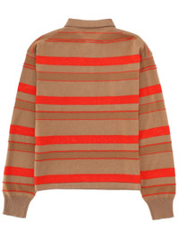 KNITTED STRIPED RUGBY POLO TOP IN BISCUIT