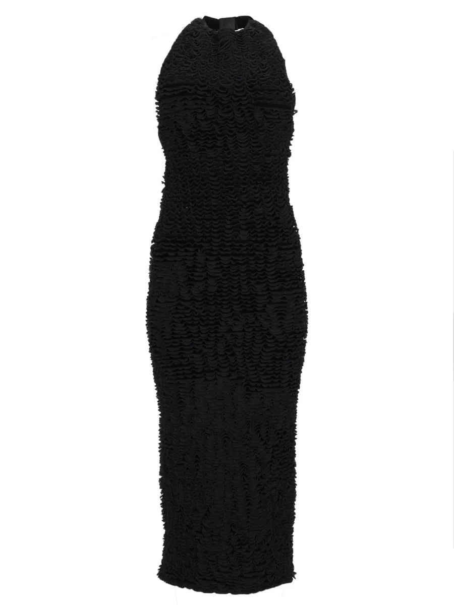 Viscose yarn dress with micro-flounces - BLACK