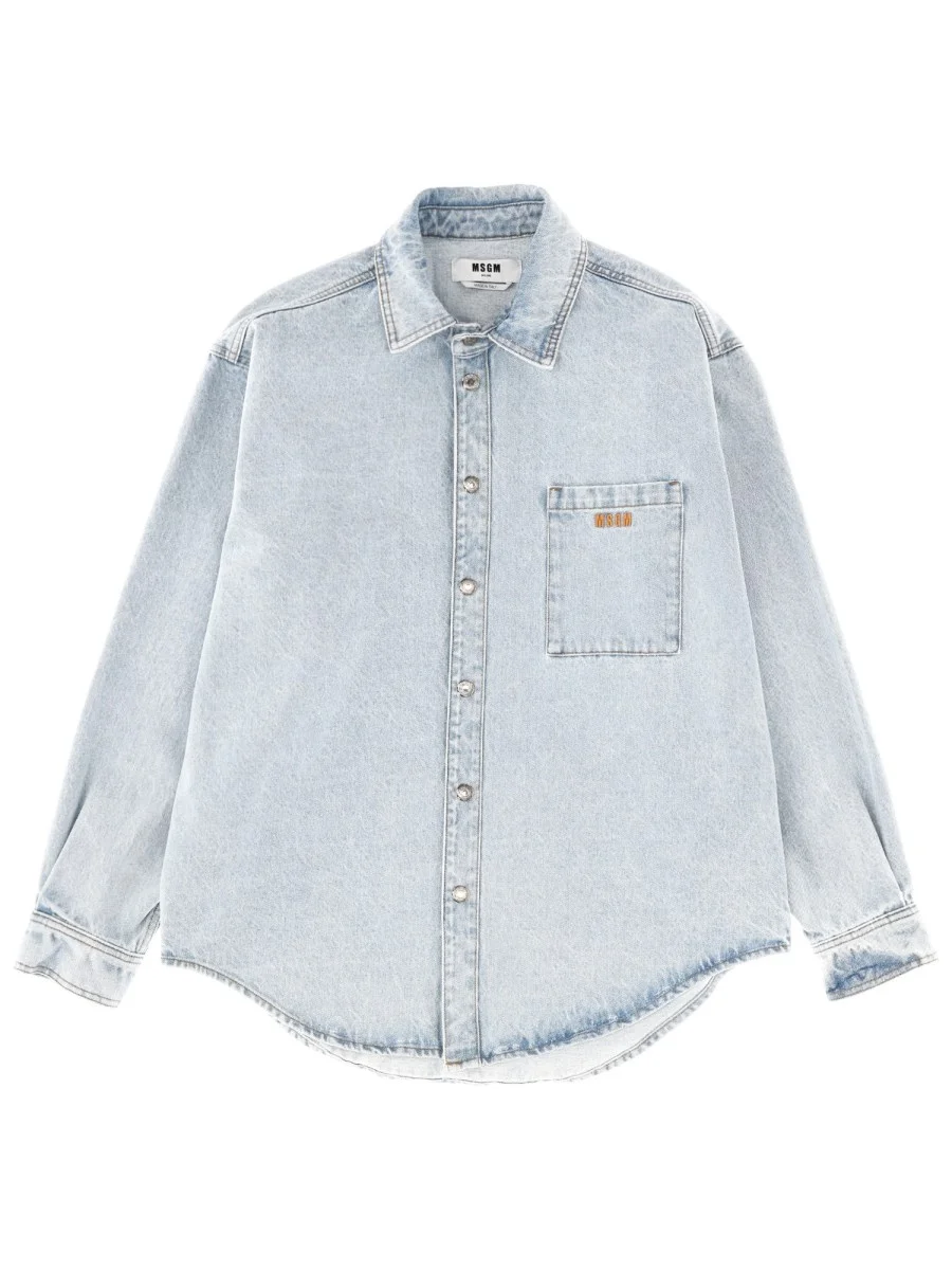 COTTON DENIM SHIRT WITH EMBROIDERED LOGO