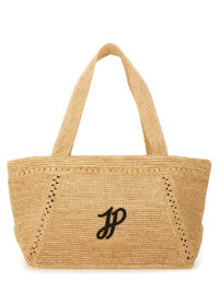 LARGE RAFFIA MONOGRAM JP TRAPEZE TOTE BAG